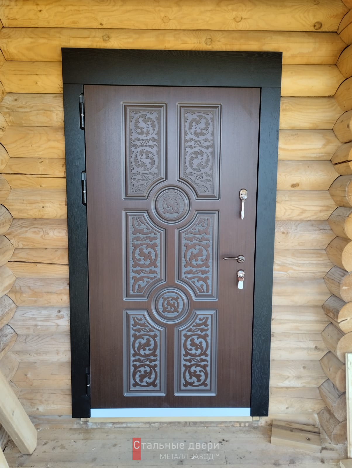 Для тех, кто ищет баланс между строгой практичностью и аккуратным внешним видом, металлическая конструкция с усиленным каркасом и листом стали толщиной 2 мм станет надёжной основой безопасности. Два контура резинового уплотнителя защищают от продувания, а при желании можно добавить утеплитель для лучшей шумо- и теплоизоляции. Внешняя и внутренняя отделка выполнены панелями МДФ с ПВХ-покрытием, которые сохраняют презентабельный вид в условиях активной эксплуатации, устойчивы к царапинам и легко переносят перепады влажности. Именно в таком исполнении представлена металлическая дверь с отделкой МДФ №61 — универсальное решение для квартиры, частного дома или офиса. Сувальдный замок Просам и цилиндровый Мосрентген образуют надёжный тандем, который при желании можно заменить на зарубежные или электронные системы. Конструкция допускает индивидуальные дополнения: от зеркал и стеклопакетов до кованых элементов, что делает модель одновременно защищённой и эстетически гибкой. Металлическая дверь с отделкой МДФ №61 доступна для заказа с бесплатной доставкой и установкой в Москве по вашим размерам и техническому заданию.
